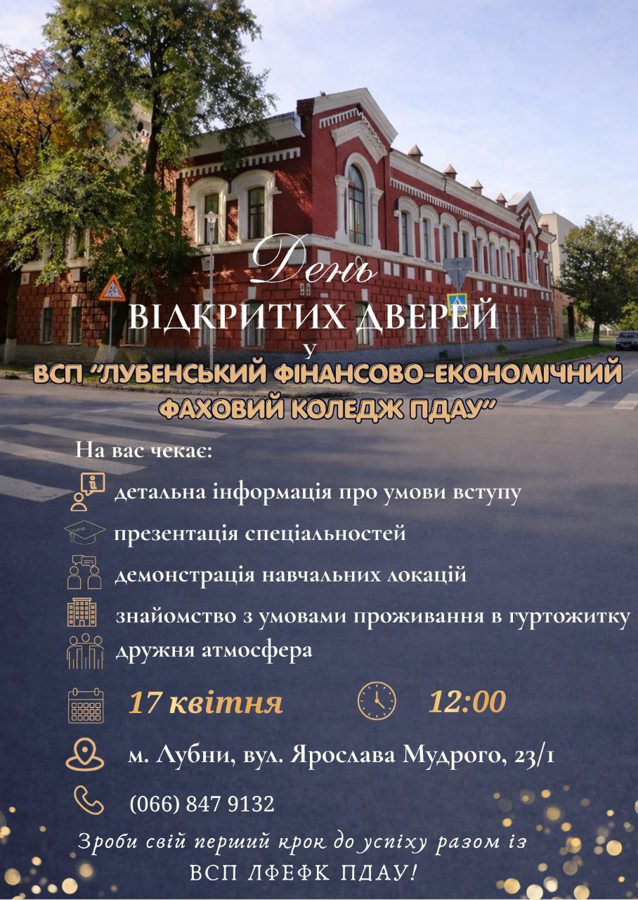 (05361) 77-535 - директор(05361) 72-600 - приймальня(05361) 72-605 - бухгалтерія(05361) 71-870 - гуртожитокemail - lubnyfekpdaa@gmail.com