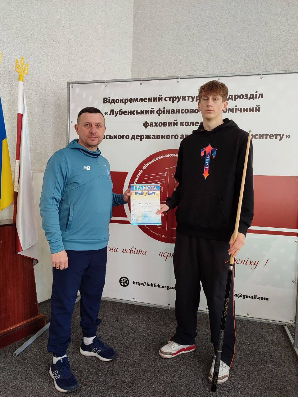 На початку березня 2026 р. у ВСП «Лубенський фінансово-економічний фаховий коледж ПДАУ» вперше було проведено змагання з класичного більярду серед студентів нашого коледжу. Усі учасники змагань показали добрий та високий рівень гри у більярд. Призові місця розподілилися таким чином: